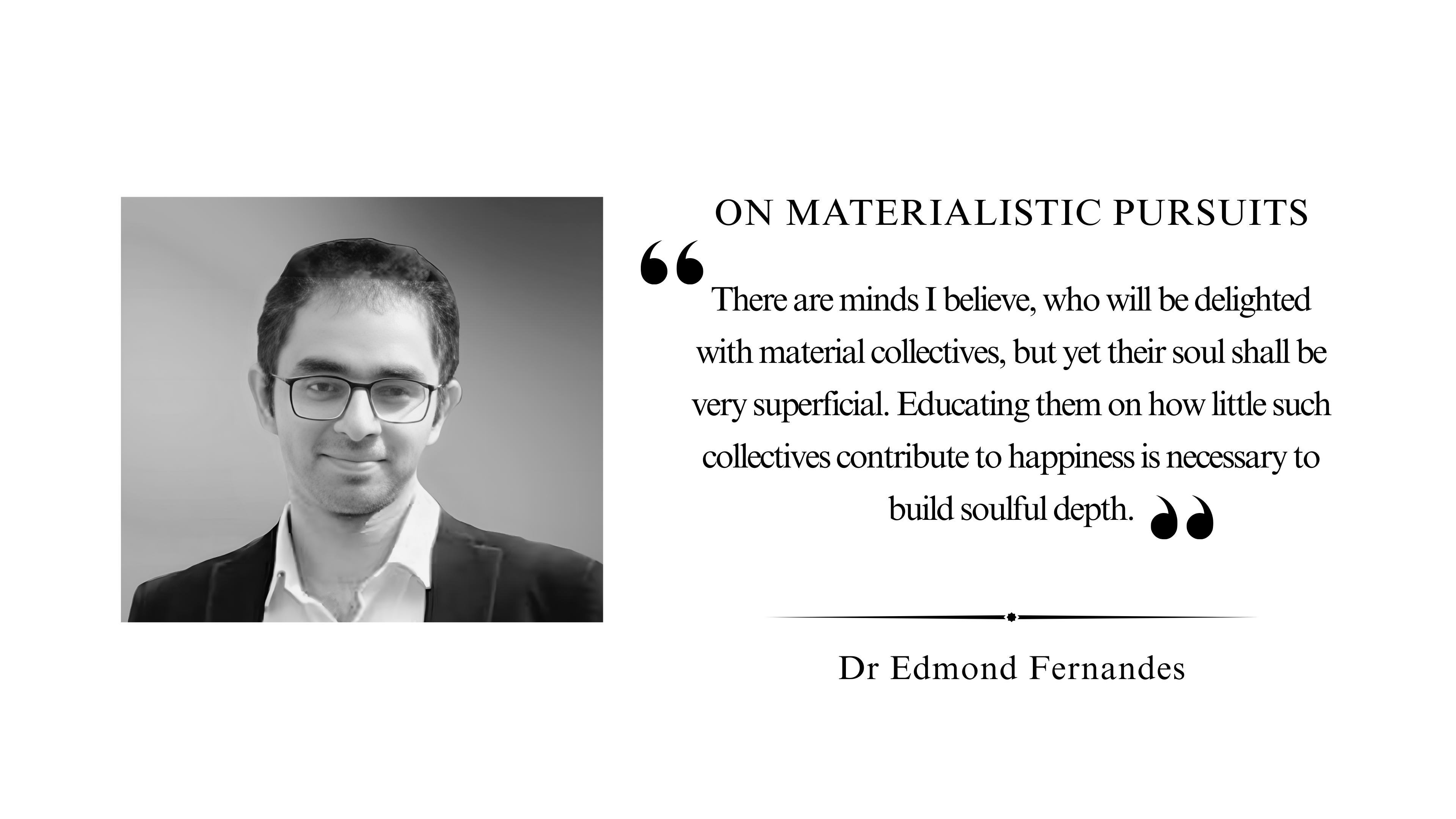 There are minds I believe, who will be delighted with material collectives, but yet their soul shall be very superficial. Educating them on how little such collectives contribute to happiness is necessary to build soulful depth.