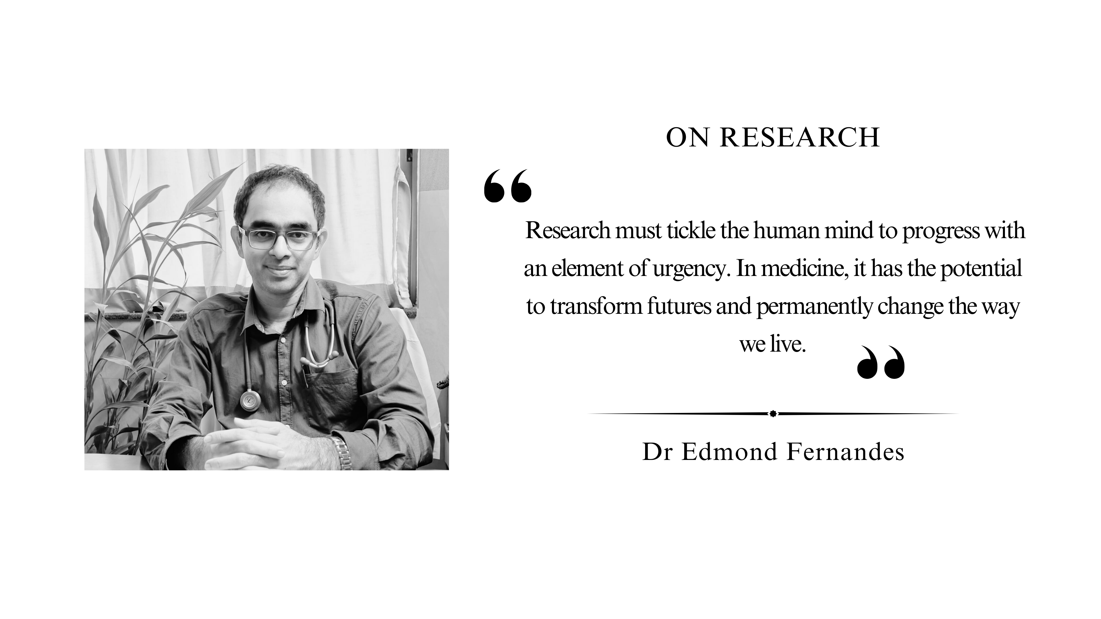 Research must tickle the human mind to progress with an element of urgency. In medicine, it has the potential to transform futures and permanently change the way we live.