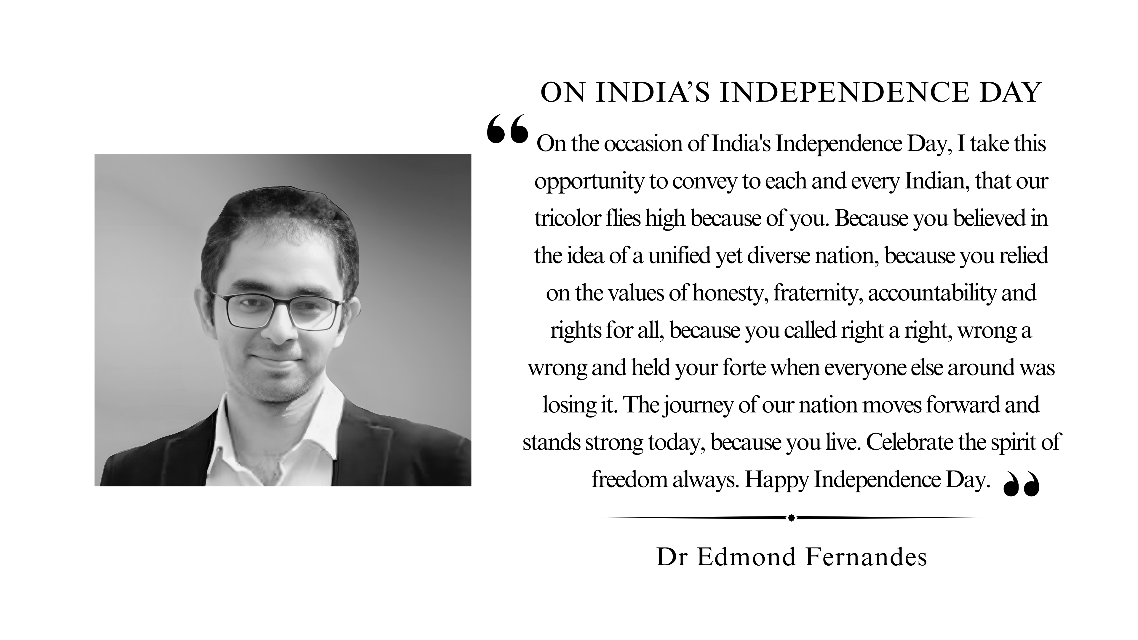 On the occasion of India's Independence Day, I take this opportunity to convey to each and every Indian, that our tricolor flies high because of you. Because you believed in the idea of a unified yet diverse nation, because you relied on the values of honesty, fraternity, accountability and rights for all, because you called right a right, wrong a wrong and held your forte when everyone else around was losing it. The journey of our nation moves forward and stands strong today, because you live. Celebrate the spirit of freedom always. Happy Independence Day.