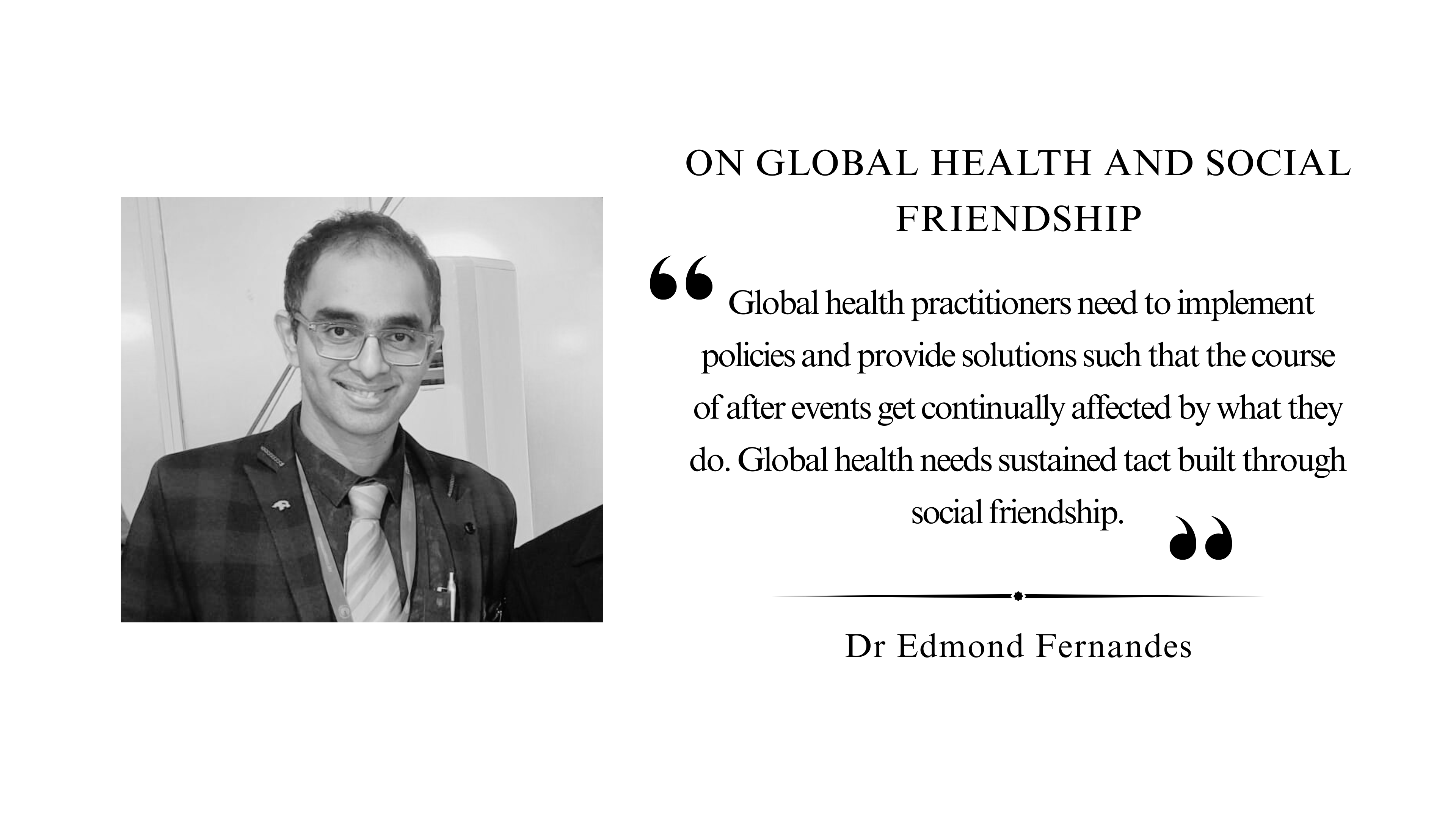 Global health practitioners need to implement policies and provide solutions such that the course of after events get continually affected by what they do. Global health needs sustained tact built through social friendship.
